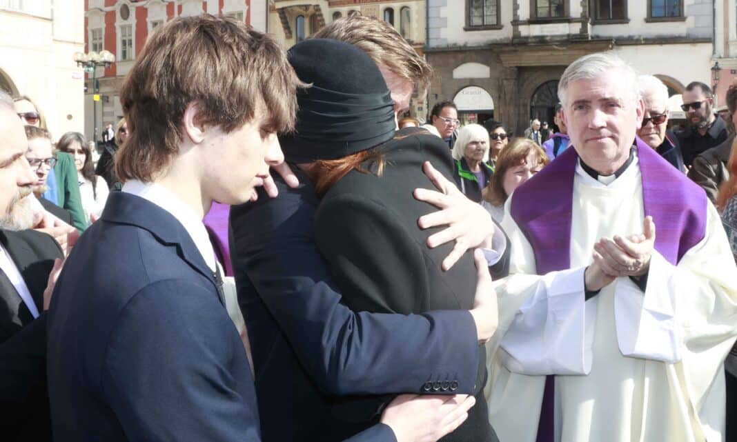 Po skončení obřadu láskyplně pohladila a obejmula Janovu rakev naloženou v pohřebním voze před jejím odvozem. Oba synové ji přitom byli celou dobu oporou, maminku podepírali, aby se nezhroutila po neskutečném emočním vypětí. Vždyť s Janem byli manželé od roku 2004 a již 12 let před tím se přátelili.