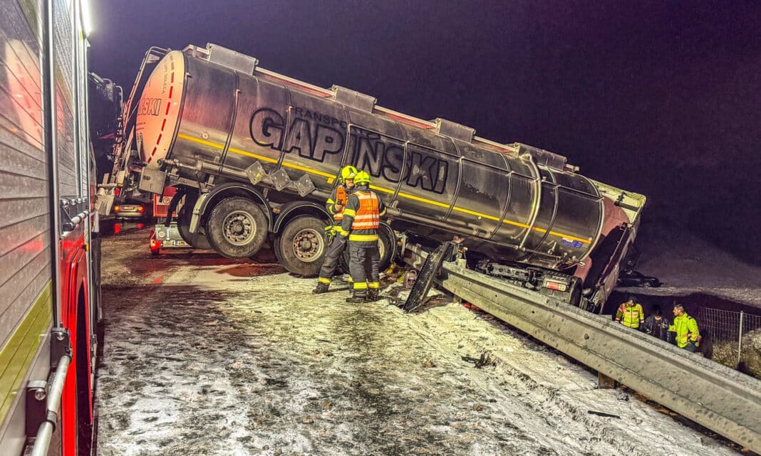 Právě na dálnici D35 u Daskabátu dostal smyk nákladní vůz a po havárii se přetočil napříč dálnicí, kterou ve směru na Ostravu částečně zablokoval. Kolem 21. hodiny se podařilo provoz na dálnici obnovit v plném rozsahu.