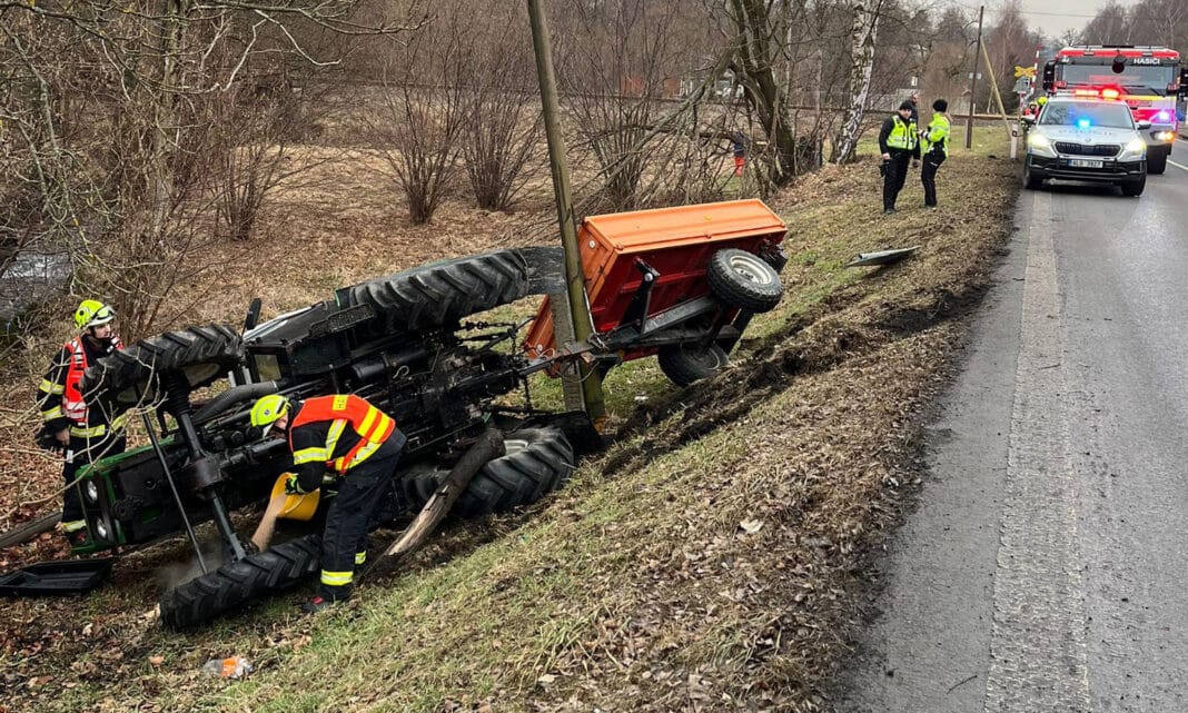 Nehoda traktoru se stala v sobotu ve Frýdlantu. Její okolnosti vyšetřuje Policie ČR. Podle dostupných informací řidič vyvázl bez zranění.