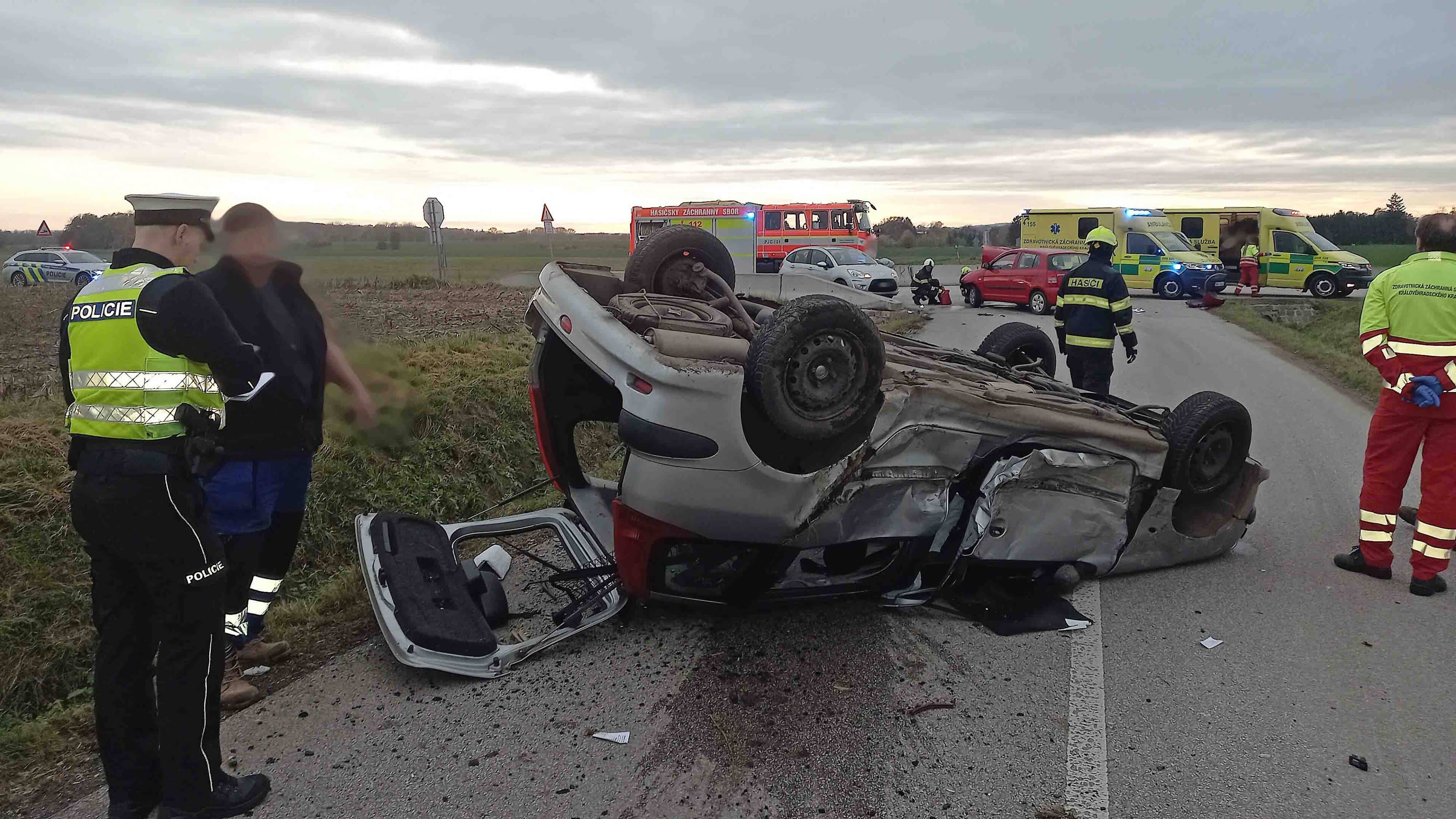 Vážná nehoda dvou aut se stala dnes odpoledne na křižovatce u Radimi na Jičínsku. Jedno z vozidel nedalo přednost na křižovatce a následoval náraz z boku, po kterém se jedno z aut převrátilo na střechu.