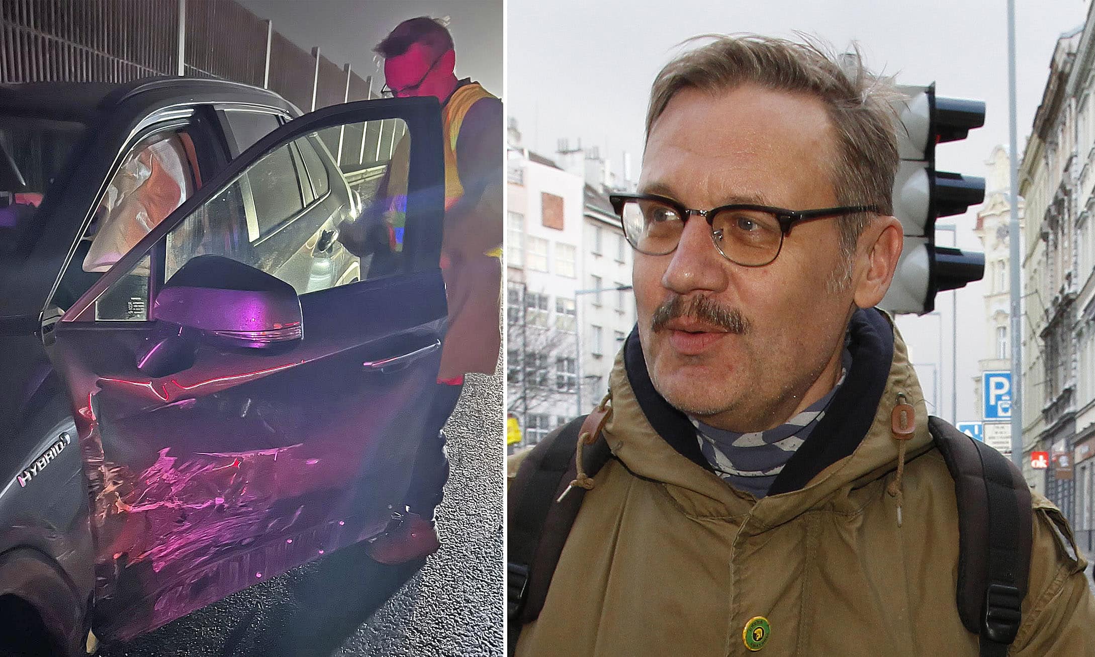 „Uf, žijeme!“ Tak si ulevil herec David Matásek po dopravní nehodě, která se odehrála včera na dálnici na Ústecku. Do jeho SUV značky Toyota s hybridním pohonem narazil jiný vůz, který řídil německý řidič. Že to byla pořádná rána, dokazuje značně poškozený bok vozu i vystřelené airbagy.