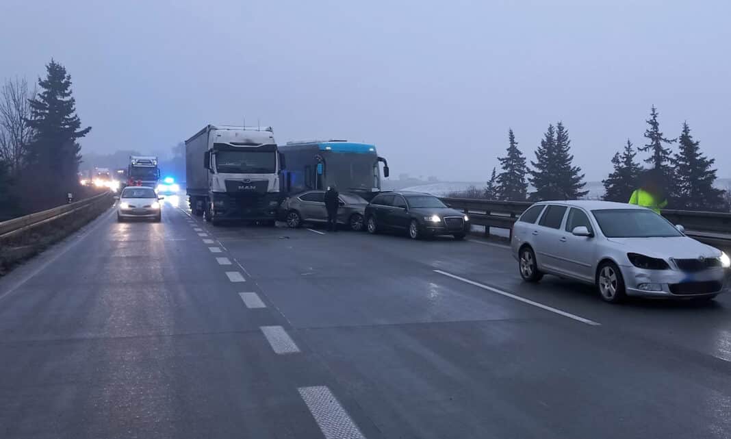 Hromadná nehoda se stala na dálnici D1 na 215. kilometru ve směru na Brno. Další nehoda byla jen o pár kilometrů dál a dálnice byla neprůjezdná. Podobně na tom byla i dálnice D2. „Na 6,5. kilometru ve směru do Brna se stala hromadná nehoda. Dálnice je uzavřena, sjíždí se objízdnou trasou na exitu 11,“ sdělila Policie ČR v pátek ráno.
