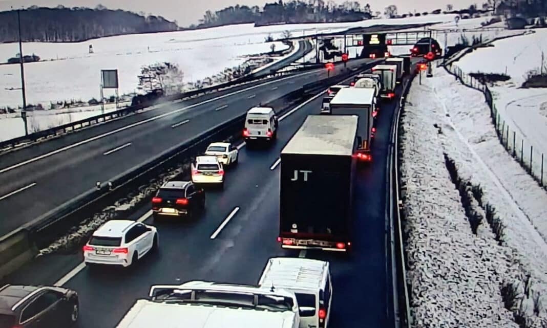 Chvíli před desátou hodinou se podařilo dálnici plně zprůjezdnit a kolony se rozjíždějí.