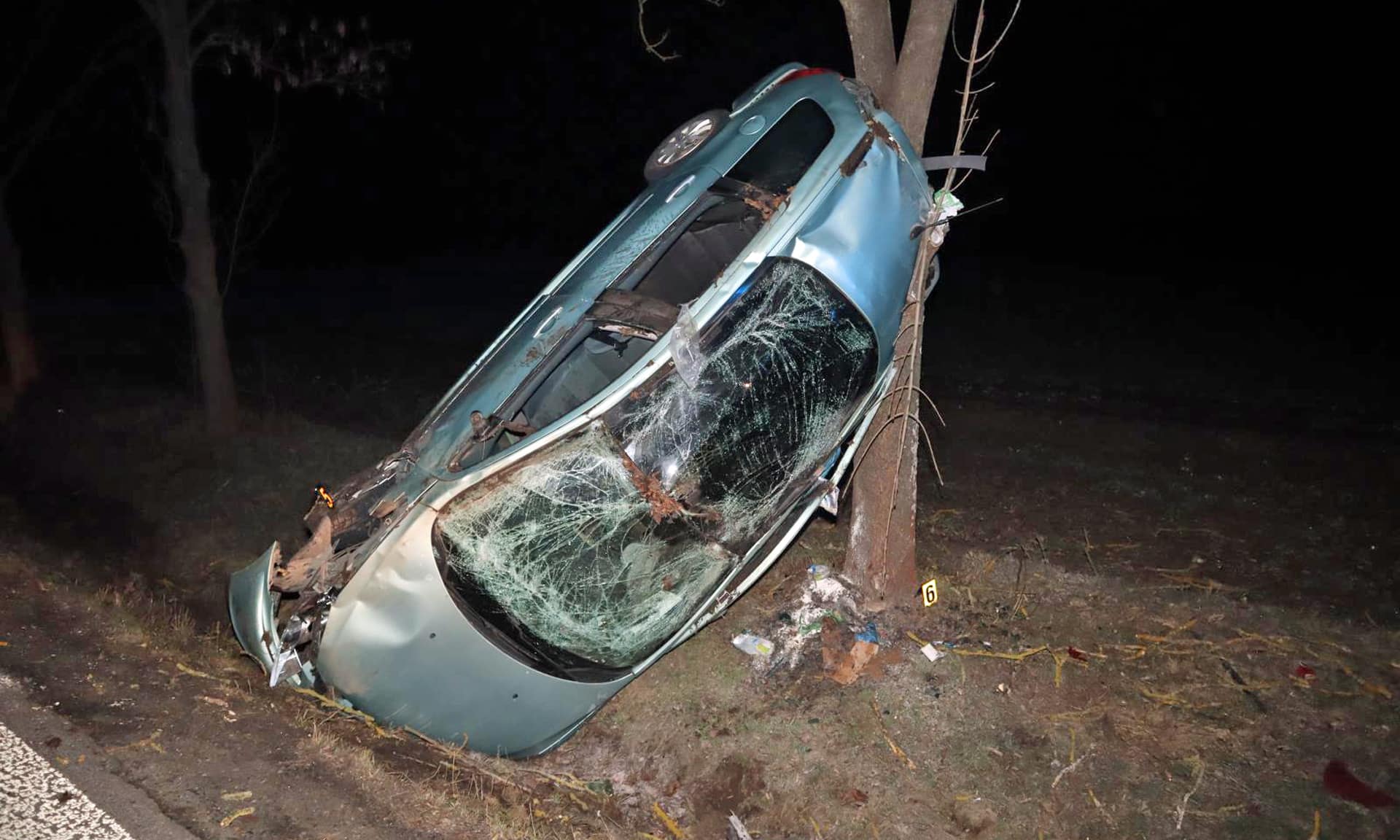 „Tam se přední částí zarylo do zeminy a horní částí opřelo o strom v dost neobvyklé pozici. Opilý řidič vyvázl z havárie s lehčím zraněním, ovšem každý takové štěstí mít nemusí,“ uvedla mluvčí policie Ivana Baláková.