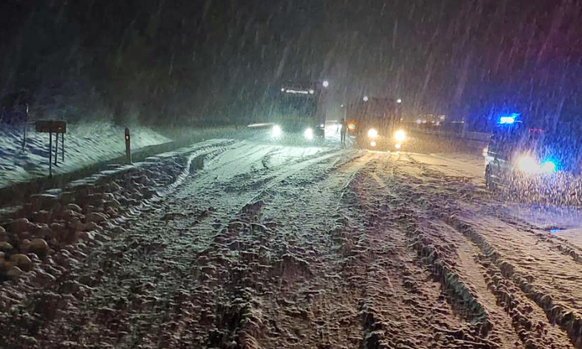 „Vlivem silného sněžení se od půlnoci stalo několik nehod. Úsek mezi 88. kilometrem a 115. kilometrem v obou směrech blokují kamiony,“ dodala policejní mluvčí.