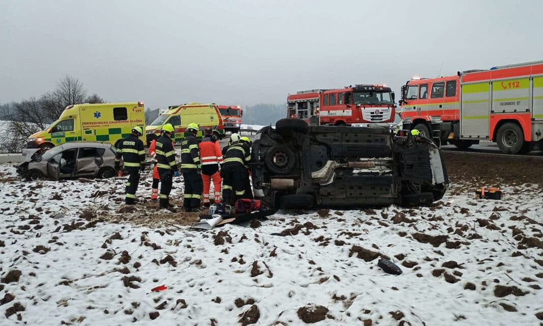 Havárie kolem půl desáté dopoledne uzavřela silnici 408 mezi Jemnicí a Dačicemi na Jindřichohradecku. Na křižovatce s odbočkou na Třebětice se srazila dvě osobní auta. Obě po nárazu vyletěla ze silnice od pole. Jeden z vozů skončil nebezpečně převrácený na boku.