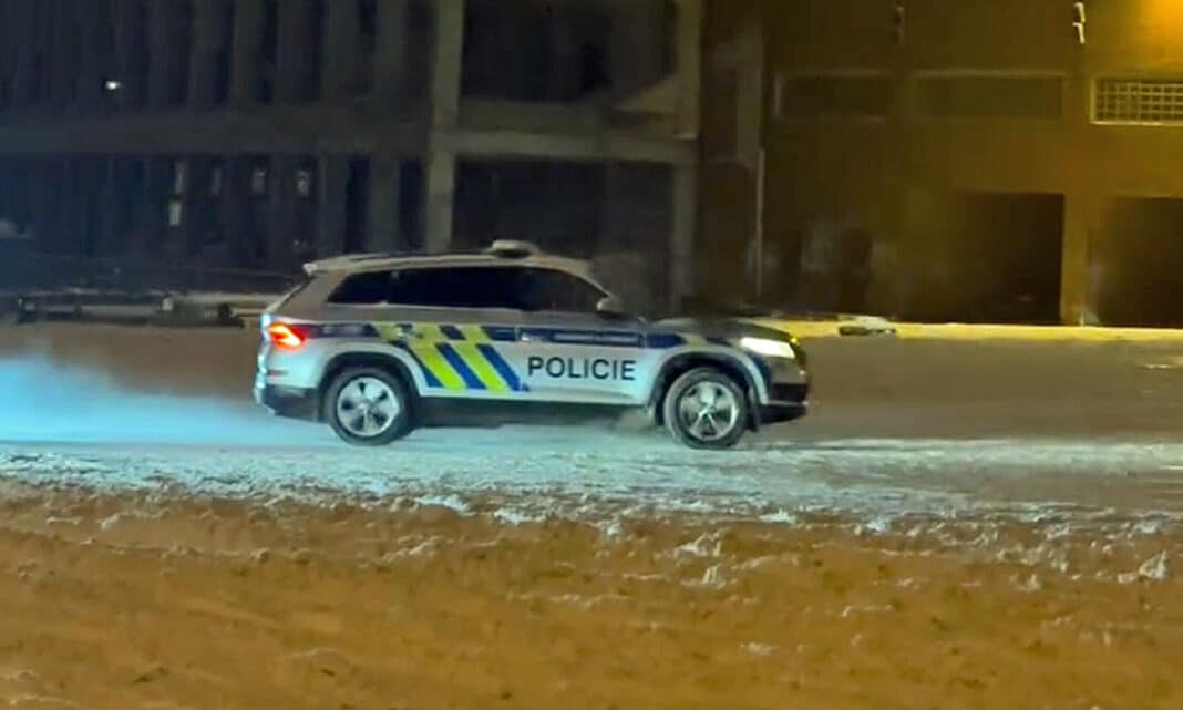 Policejní hlídka v Praze driftovala služebním vozem na zasněžené ploše u strahovského stadionu. Zakázanou jízdu už prověřuje kontrola. Sami policisté ostatní řidiče za driftování pokutují.