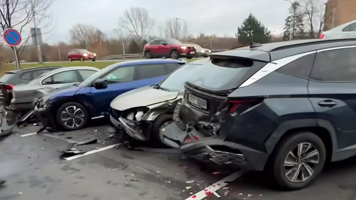 Škoda tak vznikla na jejím voze i na pěti zaparkovaných automobilech značek Kia, Hyundai, Volkswagen a BMW. První tři vozy byly nabourané více, mají poškozenou karoserii, zničená světla a části nárazníků servané na zem. Poslední dva vozy v řadě Volkswagen a BMW budou mít zřejmě „jen“ otlučeniny.