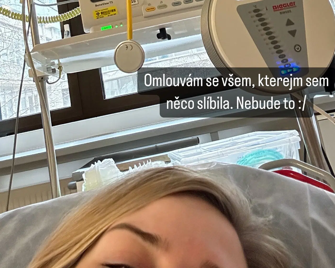 „Když člověk nadává, že nestíhá, musí zákonitě přijít něco, aby zastavil úplně,“ napsala Nikol Leitgeb k fotografii z nemocnice. Dodala, že se omlouvá všem, kterým teď něco slíbila. „Nebude to,“ dodala smutně.
