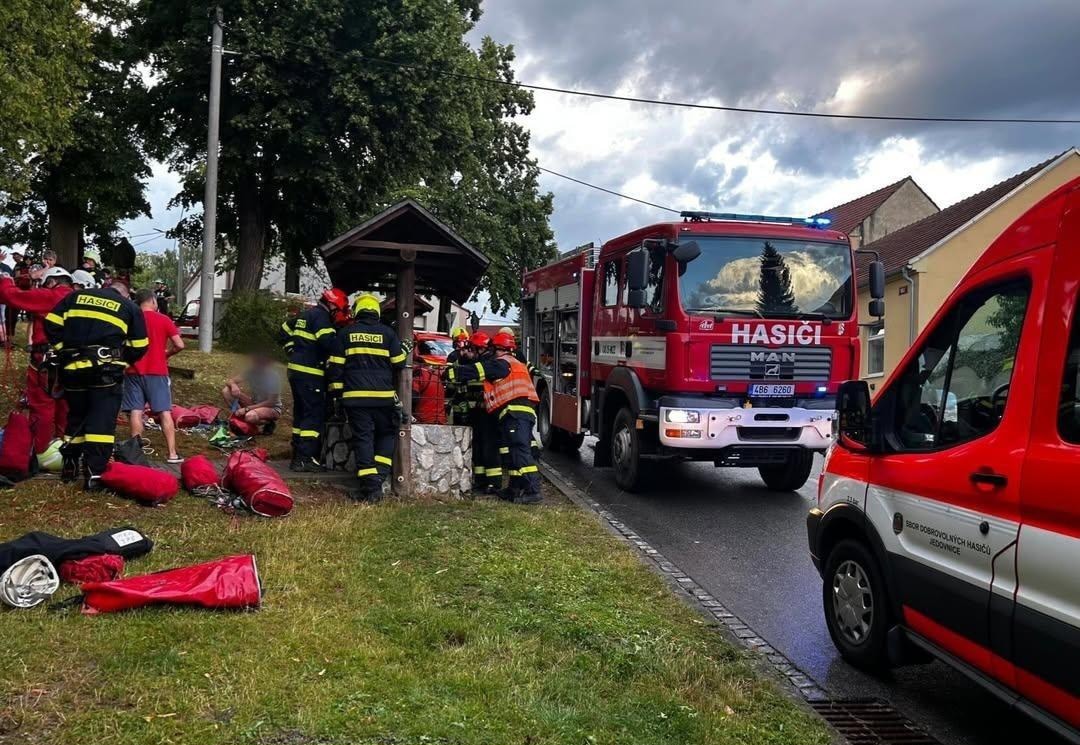 Hasiči zasahovali v neděli večer v Ostrově u Macochy, kde zůstala po silném dešti skupina osmi osob uvězněná natékající vodou v podzemí na takzvané hloubkové ferratě. Kvůli pohybu záchranných složek byla uzavřena silnice přes kopec Bělá.