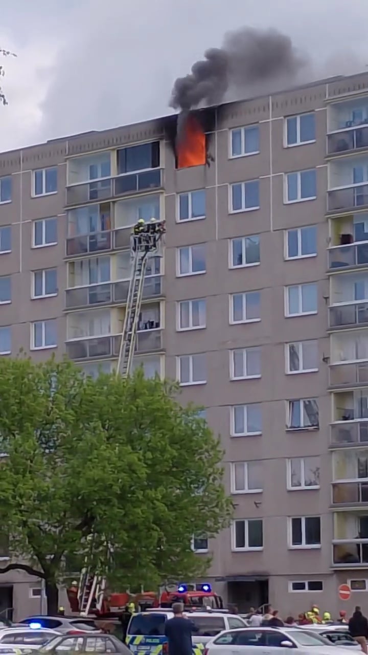 „Byl vyhlášen druhý stupeň požárního poplachu, spolupracujeme s policií a záchranáři,“ uvedli hasiči v neděli po 10. hodině. Z okolních bytů museli být evakuováni obyvatelé.