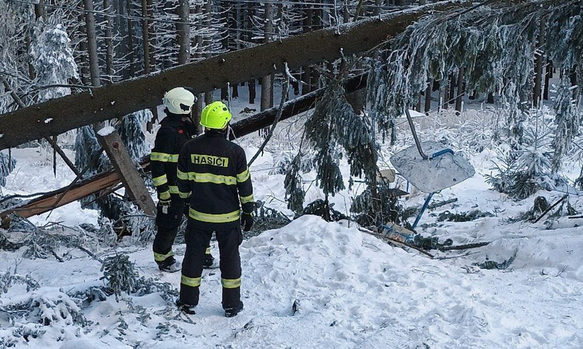 Praskající dřevo a pak pád vzrostlého stromu přímo přes cestu a bohužel také přes vedení lanovky. To se stalo včera před trojicí turistů, kteří si cestu shodou náhod natáčeli na mobilní telefon. Video z pádu stromu najdete pod článkem. Turistům se naštěstí kromě pořádného šoku nic vážného nestalo.