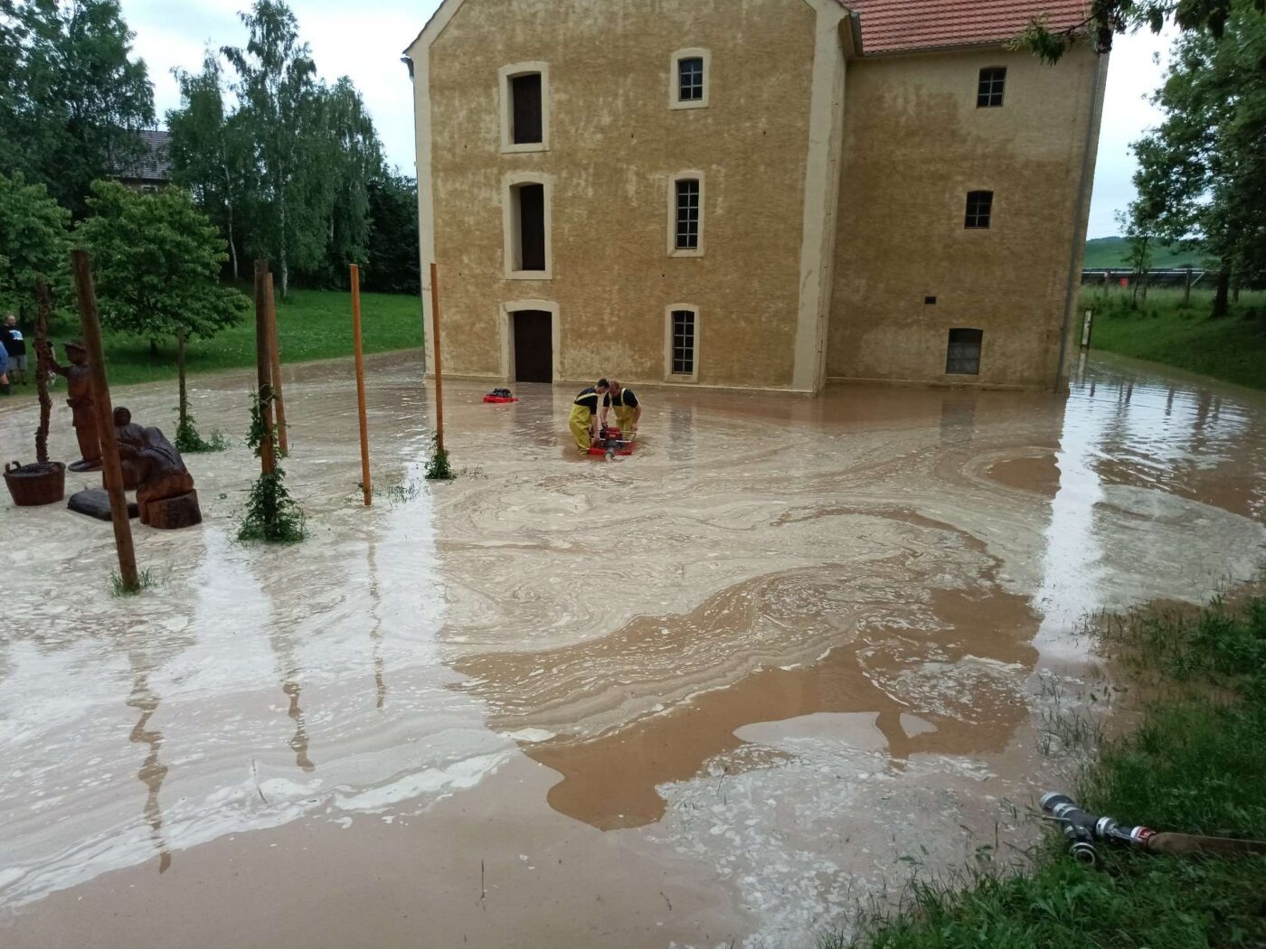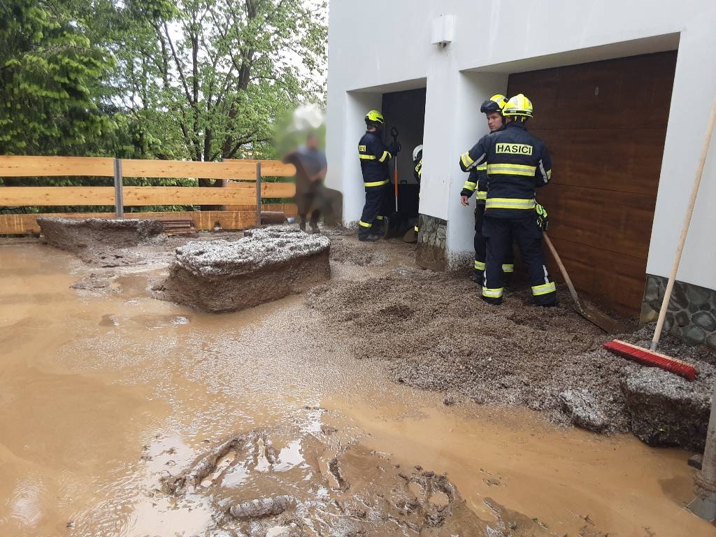 Přívalové deště s velkými kroupami a bahno z polí se valily v sobotu odpoledne Dalešicemi u Jablonce nad Nisou. Hasiči museli bahno odčerpávat ze šesti domů, podle starostky obce ale bylo zasaženo až 30 domů.